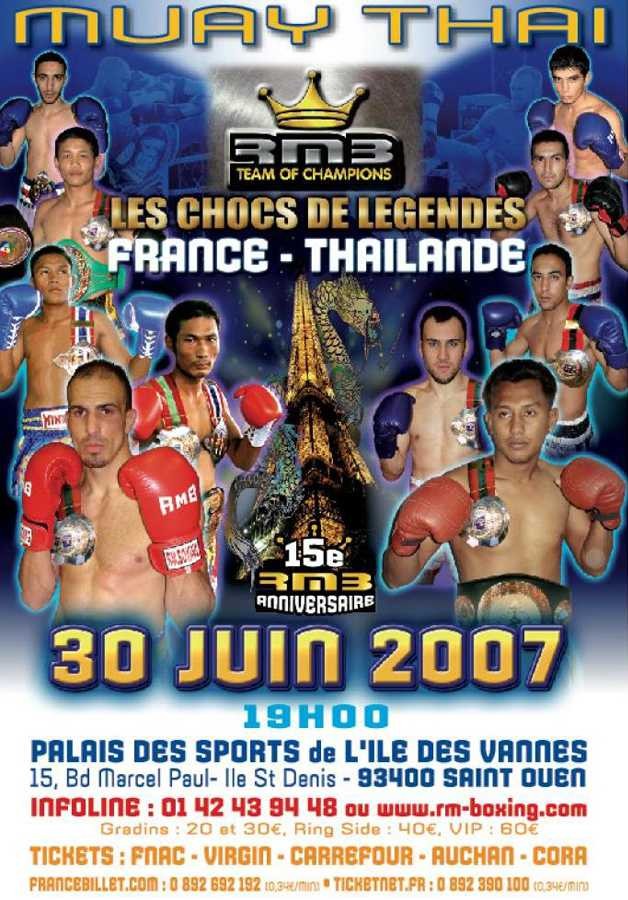 Rachid Saadi a organisé des France contre Thaïlande mémorables, dont l’édition marquante de 2007, qui vit la venue d’une délégation thaïlandaise exceptionnelle composée de Petnamhek Sor Siriwat (champion du Lumpinee et de Thaïlande), Chok Dee Por Pramuk (champion du Lumpinee), Danthai Singmanasuk (champion du monde WBC), Peth Aek Sor Suwanatadi (champion du Rajadamnern) et Nontachai Sit-O (Champion du Lumpinee, champion de Thailande, Meilleur Boxeur de l’année 2000).