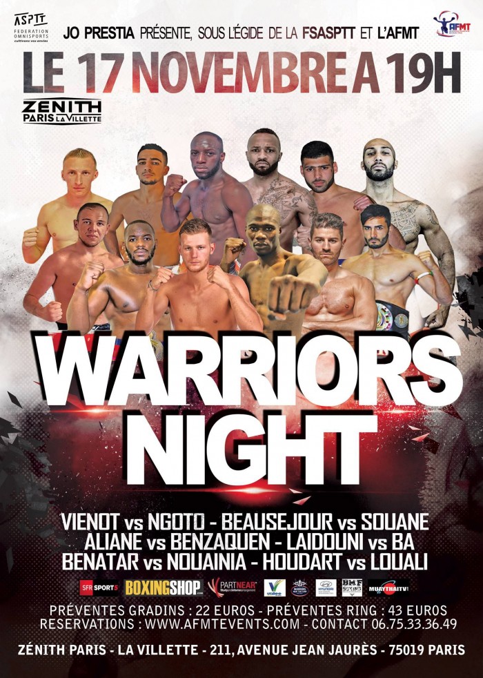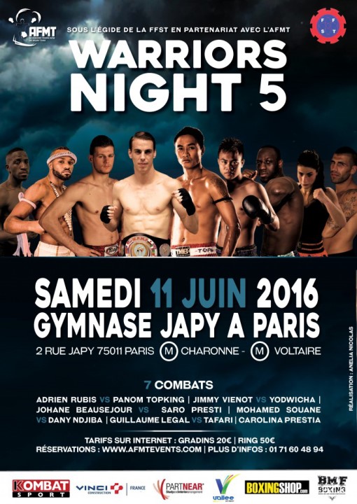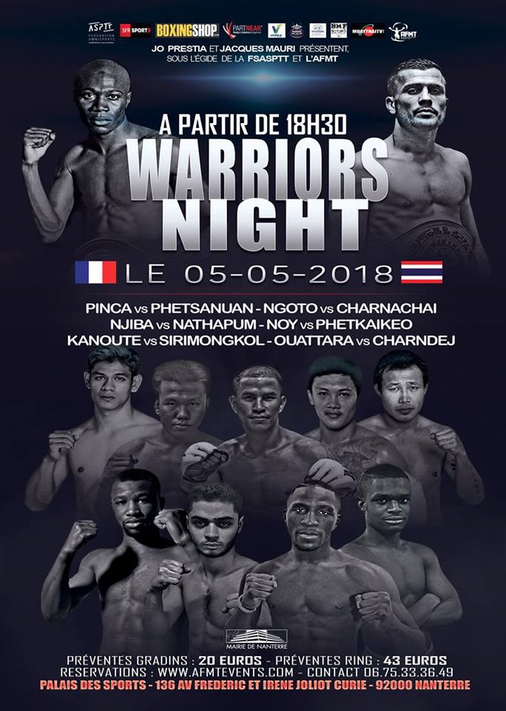 L’ancienne star des rings Jo Prestia, auteur de combats fantastiques, s’est transformée en promoteur en créant le show « Warriors Night » en 2013. Son premier gala, au Palais des Sports de Levallois, comprend des matchs chocs comme le grand champion Yohan Lidon face à la star thaïlandaise du moment Yodsanklai Fairtex, le jeune prodige Dylan Salvador contre le champion du Lumpinee Kaew Fairtex, ou encore l’affrontement entre les deux panthères des rings Abdellah Mabel et Djimé Coulibaly.