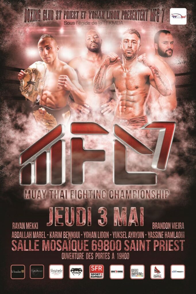 Yohan Lidon (20 fois champion du monde) fonde le show « MFC » (Muaythaï Fighting Championship) en 2014 à Saint-Priest qui comprend déjà 11 éditions dont une mémorable en 2018 avec la venue de la star thailandaise Superbank (Champion du Radja, champion du Lumpinee, Meilleur boxeur de l’année 2014 « Sports Authority of Thailand »), de Chorfah Tor Sangtiennoi (Meilleur boxeur du stadium du Radja 2018), d’Avatar Tor Morsri (Champion du monde WPMF) et du Biélorusse Roman Kryklia (Champion du monde ONE de Muay Thai et de Kick Boxing).