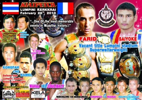 Djamel Yacouben et ses associés, M. Betahar et M. Fezzani, ont réussi à monter un gros plateau pour leur premier gala au mythique stadium du Lumpinee à Bangkok. Le phénoménal Rafi Singpatong avait conservé sa ceinture du Lumpinee en battant par KO le solide Manachaï, et le surdoué des rings Jimmy Vienot s’était emparé de la ceinture du Lumpinee en battant le champion Talaythong.