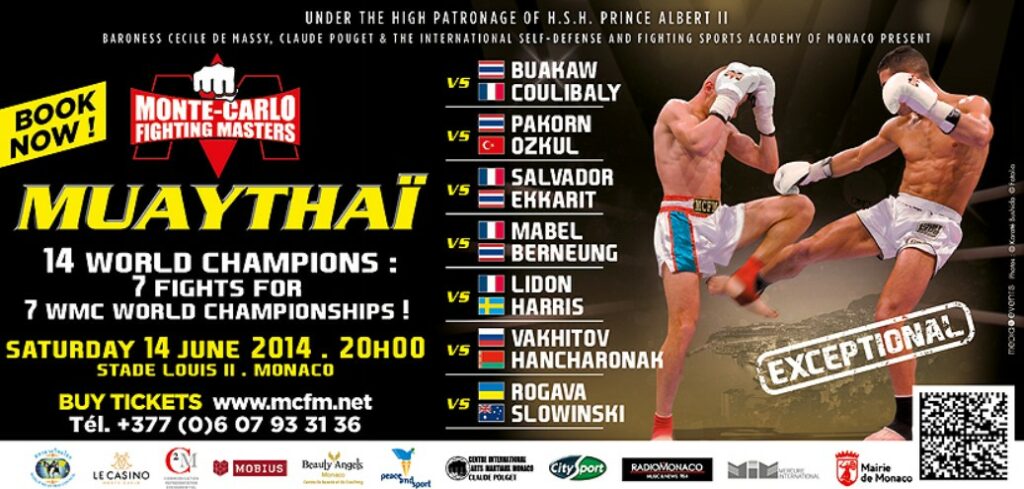 Le célèbre organisateur Claude Pouget, professeur diplômé de renom et détenteur de nombreux titres prestigieux, bien que basé dans le petit État de Monaco, a souvent attiré un grand nombre de Français dans ses somptueux galas. Son plus grand show en Muay Thai eut lieu en juin 2014, marquant un événement historique, pour la première fois, sept championnats du monde WMC étaient organisés lors d’un même gala.