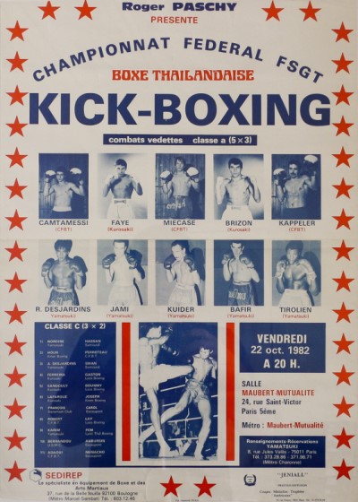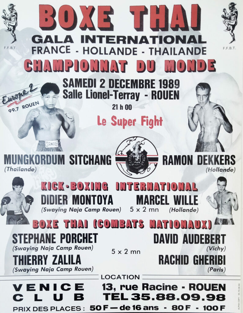 La fédération de boxe thaï de l’époque a également organisé de grands chocs surtout à Paris mais aussi dans les régions de Normandie et du Nord.