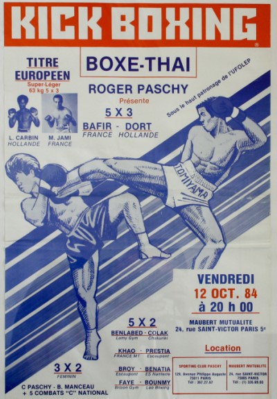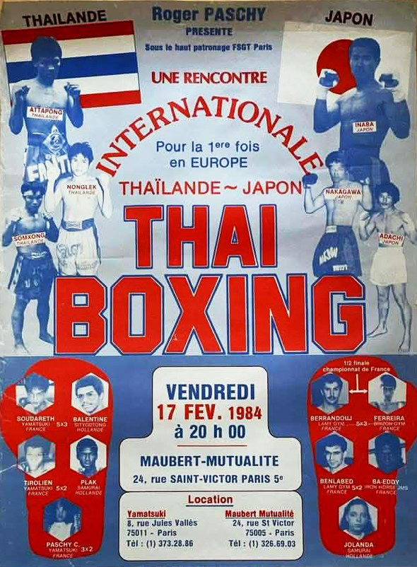 Dans les années 80, les premiers grands organisateurs de Muay Thai en France furent Roger Paschy et le regretté Raoul Lamy, qui ont fait découvrir au grand public cet art martial thaïlandais ancestral.