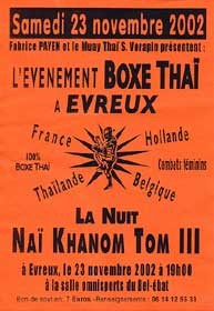 Fabrice Payen, premier étranger au monde à être classé N°3 au mythique stadium du Radja de Bangkok, a lui aussi organisé plusieurs grands galas de Muay Thai sous le nom de« Nai Khanom Thom », en hommage au célèbre boxeur thaïlandais qui terrassa plusieurs champions birmans en 1774.